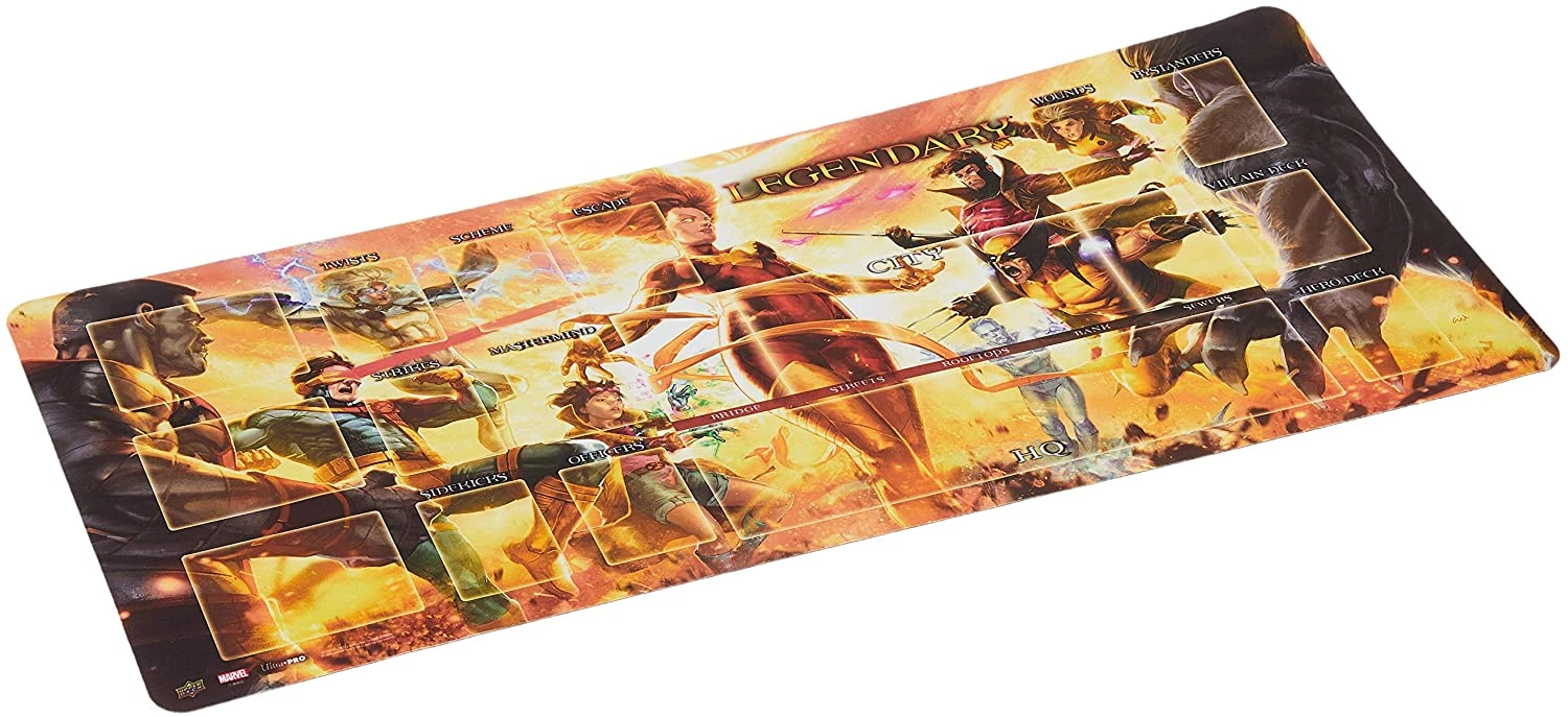 Check out this new Legendary® playmat featuring original art by renowned artist Gil Martimianon da Silva Jr! Enhance your game with the Legendary® Playmat: Dark Phoenix vs The X-Men. The rubber backing prevents shifting and allows for easy roll up and travel. The playmat is approximately 32.5″ x 14.5″.