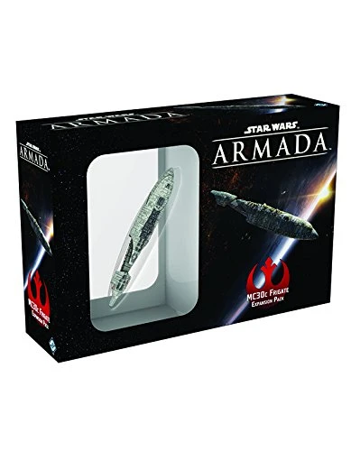 In addition to its pre-painted MC30c frigate miniature, this expansion pack contains two command dials and ten upgrade cards, along with all the tokens you need to bring this Rebel ship to battle. Of course, as with other Armada expansion packs, the MC30c Frigate Expansion Pack also comes with two ship cards that let you field your MC30c as either the MC30c Scout Frigate or MC30c Torpedo Frigate. Though they share many of the same design elements, the different costs and battery armaments of these two different configurations ensure a wide range of tactical flexibility for your MC30c.