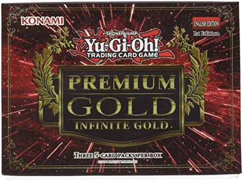 Premium Gold: Infinite Gold is the latest solid gold collector’s set for the Yu-Gi-Oh! TRADING CARD GAME. With something for everyone, Premium Gold: Infinite Gold contains dozens of upgraded cards to bling out your collection plus 21 new cards for your Main Deck and Extra Deck, all gleaming in gold foil technology!